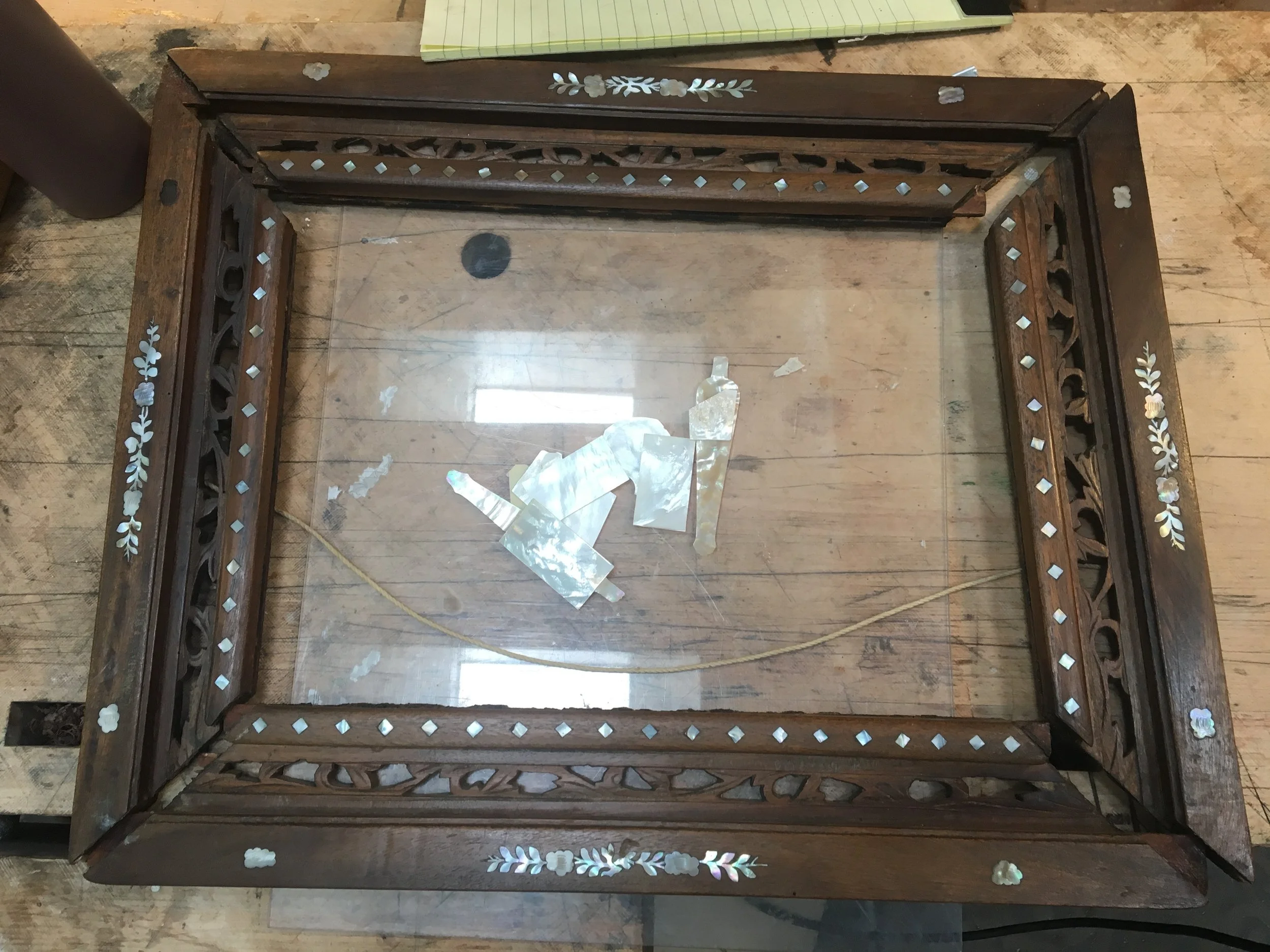 Mother of pearl inlaid frame. Selecting the proper time of Mother of pearl for the project