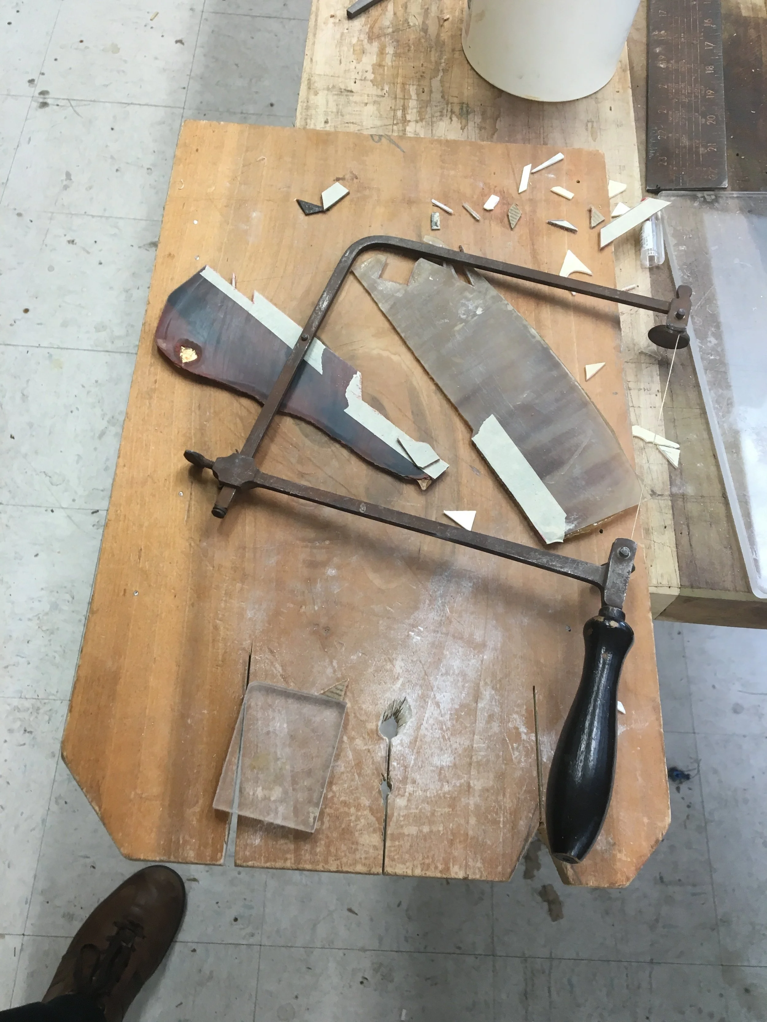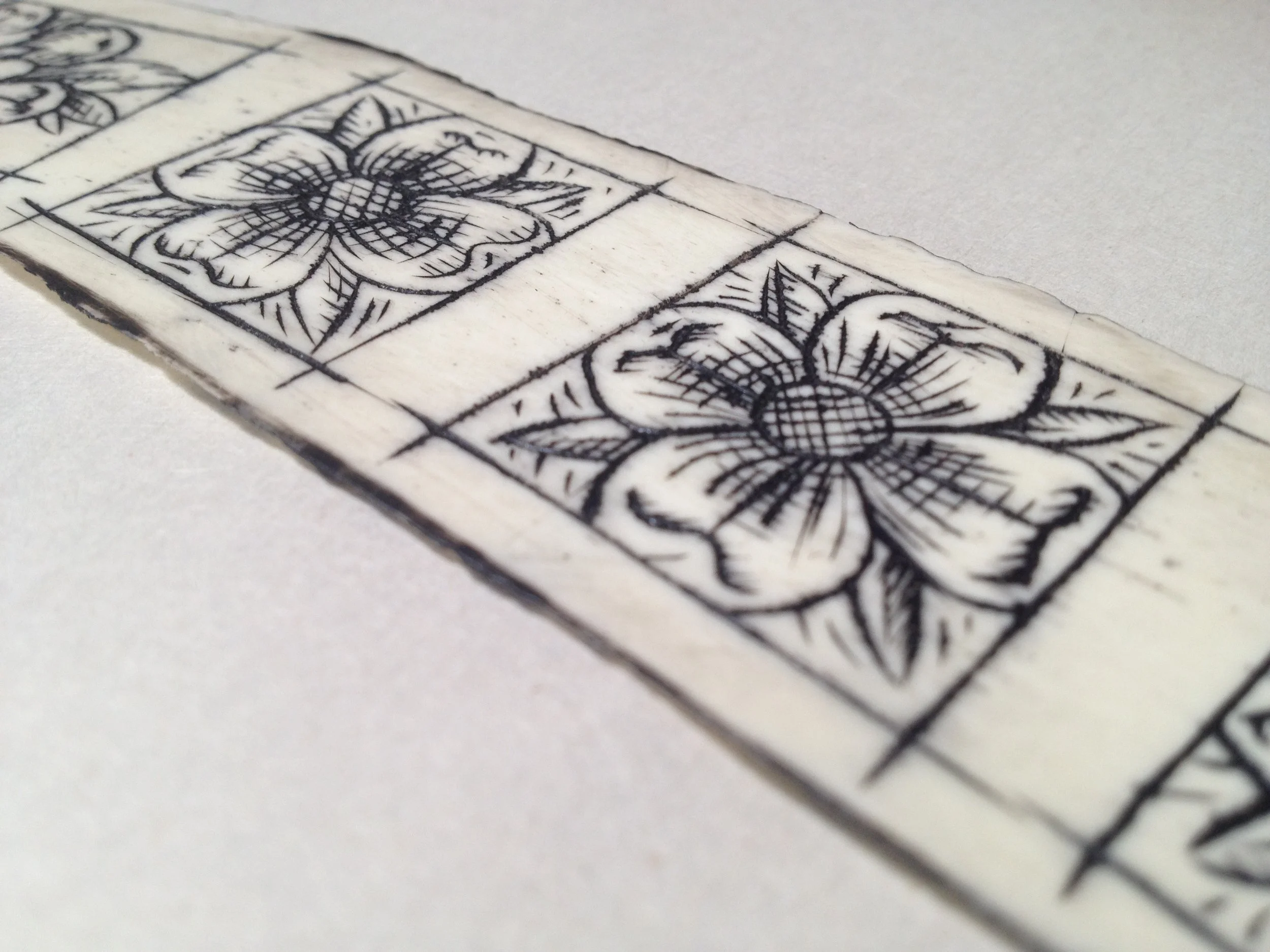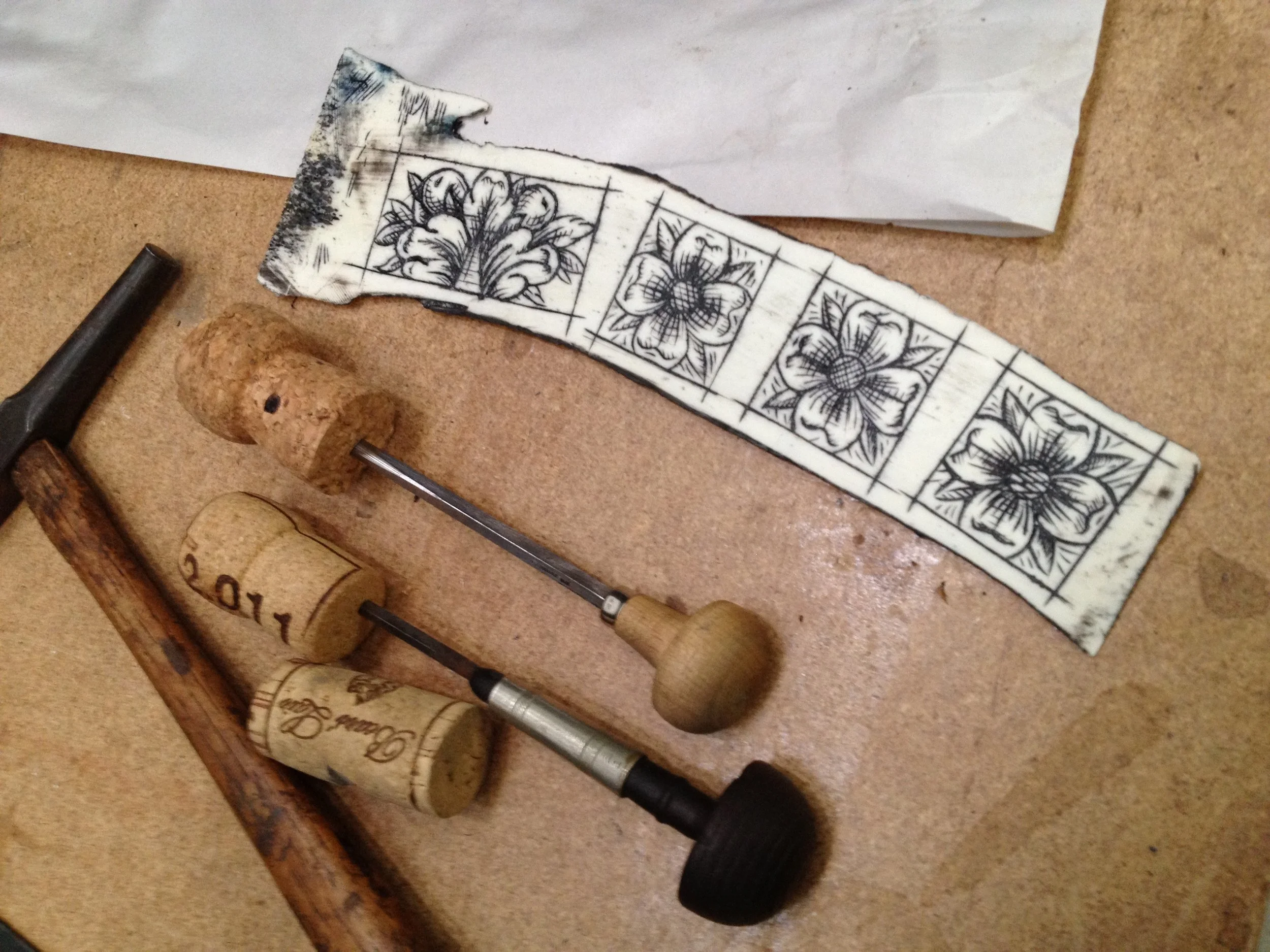Cleaning of Boulle marquetry cavities to provide proper adherence to inlay the lose brass elements.